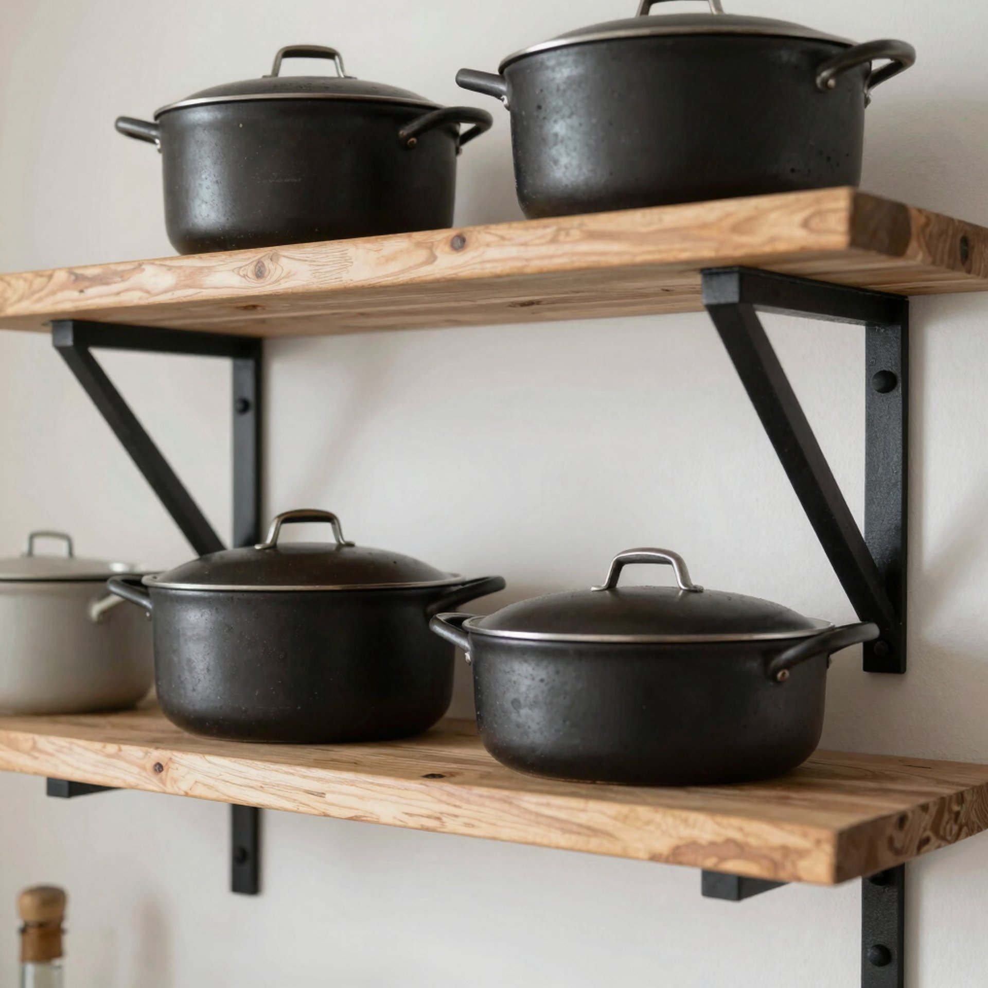 Solid wood shelves, especially those made from pine, oak, or reclaimed timber, are strong and forgiving. According to installation guidelines from home improvement retailers like Home Depot, a 36 inch solid wood shelf should use at least two wall studs for proper support when holding more than 30 pounds. In farmhouse kitchens where dishes and small appliances sit on open shelves, weight planning reduces long term sagging and wall damage.